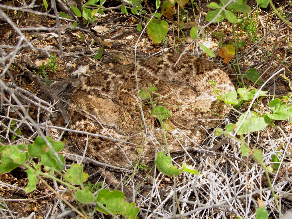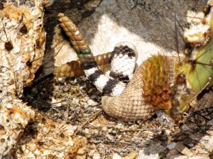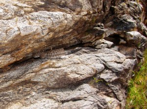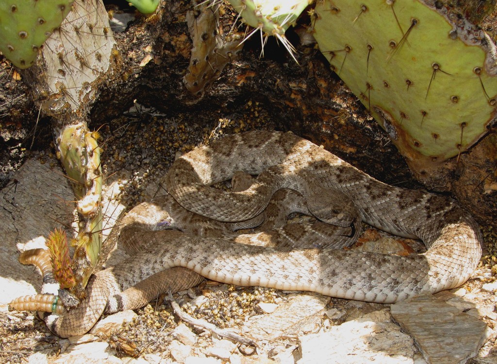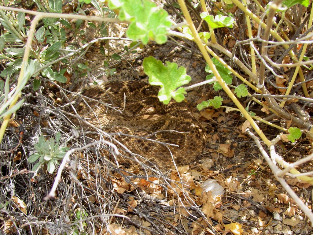 Pic 04: Our most happening den on the plot this year was AD7. There were as many as six atrox visible in the crevice here this winter. On this day, we found an unknown female out. She tried to spook and go back in, but look who is blocking her! There were actually three females in this crevice, not to mention a plug of males jammed in this tight upper crevice.