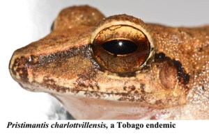 The trails above the fishing village are narrow and the terrain is steep, but within a few minutes we found several calling male Pristimantis charlottvillensis and a six millimeter frog that is probably Prisimantis urichi or P. turpinourm – Leptodactylus fuscus and L. validus are here also.