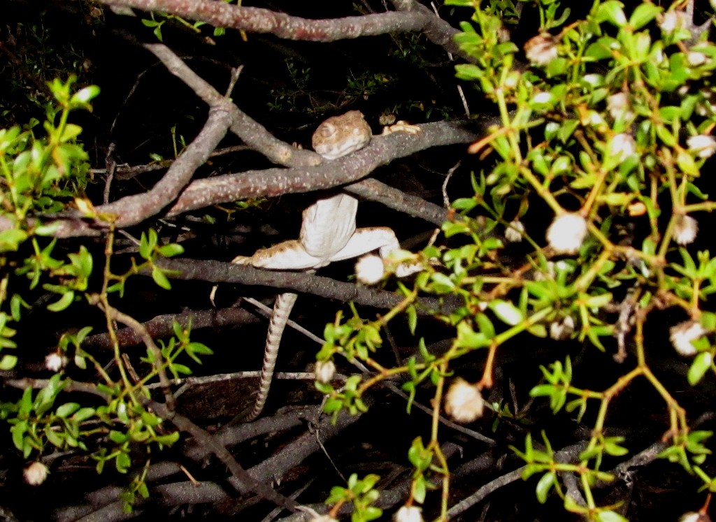 Pics 7 and 8: Our molossus #10, “Susan.” What the image doesn’t show is the strips of our flesh being gaily festooned to the catclaw jungle that rises above her. Two of our molossus seem to heavily favor catclaw, which may be why we find so few of them out there. It’s hard to herp inside those pernicious plants.