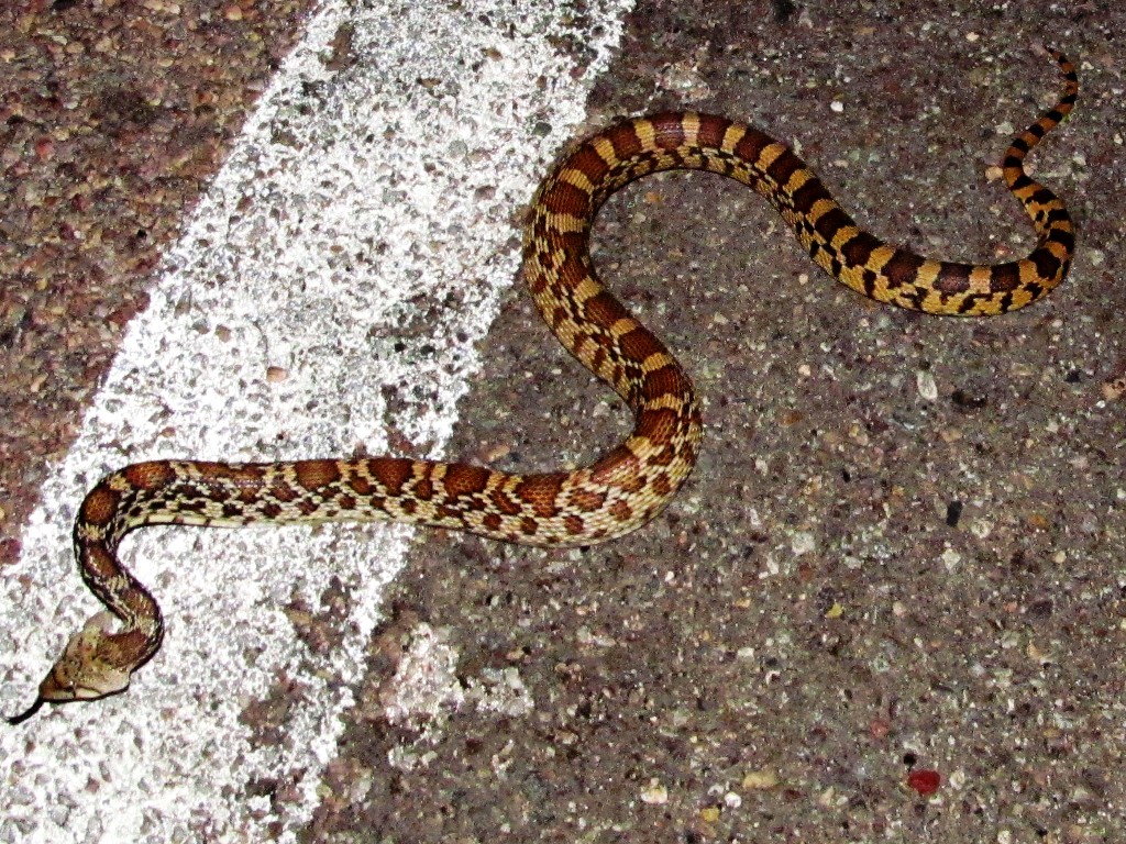 Image 7: A gophersnake encountered on 11 August–note the aggressive flattened-head posture. I only see this kind of behavior rarely.