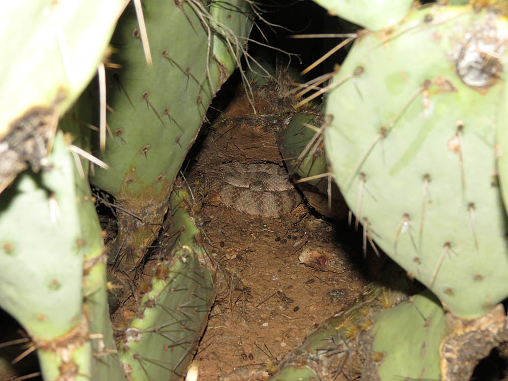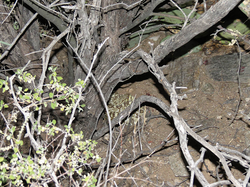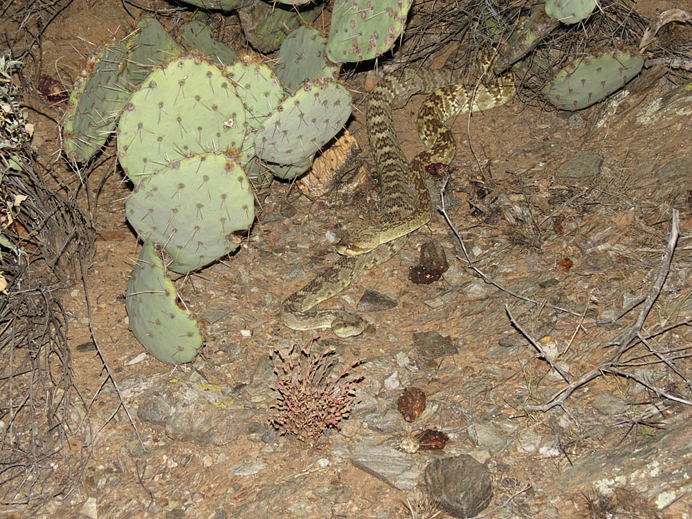 In mid February of 2002, during the pistol/shotgun Javelina hunting season, I was observed by a hunter on a quad while writing up our black-tailed rattlesnake male CM4. The hunter was watching me with his binoculars about 20 meters below me. He eventually buzzed off. The snake was just outside of a den that we call “Jeff’s Den,” which is located on the south ridge of the Suizo Mountains proper. My first impulse was a good one: bag the snake, and bring it back after the hunt. Instead, I left it as it was. The next day, the snake, and the signal, were gone forever. I’ll just stop there, and let that comment ride as a reason for my paranoia when the hunting seasons arrive.