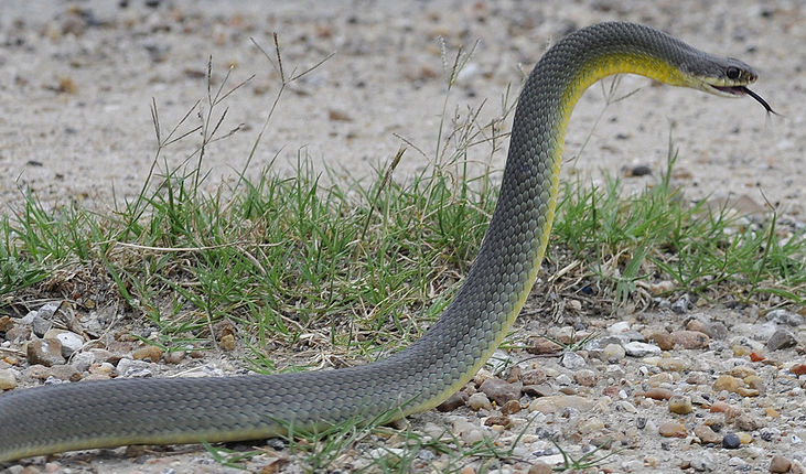 An eastern yellow-bellied racer (Coluber constrictor flaviventris) in Texas