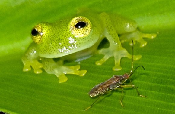 Biology: The depressed head and body allow the frog to slide between the overlapping leaves of the bromeliad. The frogs reproduce in the bromeliads and the tadpoles undergo development in the bromeliad tanks. The males may call, but it needs confirmation. Speculation that males defend their territory from other males using combat behaviour that involves biting is based upon behaviour reported in members of the genus Phyllodytes. The tadpoles are almost transparent and have thin, almost fin-less tails and are probably not strong swimmers. They are often attached to leaves where they may feed on algae and detritus growing in the bromeliad tank, but they may also feed on their siblings. Plants containing tadpoles also had an adult frog, thus this species may have some form of parental care.